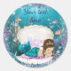 Des autocollants de baby shower de sirène avec une adorable sirène brune portant une tiare et des perles sur un bleu et violet assez turquoise sous l'arrière - plan de la mer. Vous pouvez ajouter du texte pour personnaliser ces mignons autocollants de baby shower sirène.