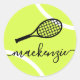 Autocollants de balle de tennis personnalisés imprimés avec un nom ou un texte personnalisé dans une police féminine et un joli script moderne et simple monogramme de raquette de tennis, idéal pour une invitation de tennis anniversaire, faveur, ou cadeau. Utilisez les options de personnalisation de Zazzle pour créer une feuille pour chaque invité comme une faveur à emporter d'une fête d'anniversaire d'un club de tennis.