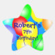Un autocollant en forme d'étoile pour l'étoile du jour ! Un bouquet de ballon coloré et lumineux, prêt à être personnalisé avec n'importe quel nom et âge d'anniversaire. Montré "Le 7e anniversaire de Robert !" Un autocollant coloré et amusant occasion spéciale!