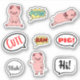 Cochons mignons, Salut !, Pow, Blah, Bam, Cochon, Mignonette - Colonnes de bulle vocale avec trois stickers de cochon kawaii mignon.