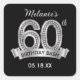 Stickers Black & Silver 60th Birthday avec ajout de diamants. Cet autocollant carré peut être utilisé pour les étiquettes de faveur d'anniversaire ou des autocollants sur les faveurs.