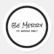 Stickers Be Merry Holiday tendance et moderne avec un design de texte noir avec les mots "Be Merry" dans un script manuscrit en gras. Ces élégants autocollants de design typographique peuvent être facilement customisés avec votre nom de famille ou autre texte. Pour plus d'options de personnalisation, cliquez sur Customiser.