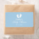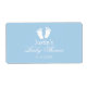 Bouteille d'eau de baby shower rose pastel et blanc sur mesure étiquettes avec pieds. Modèle auto-collant personnalisé élégant do-it-yourself bouteille d'eau. Typographie stylisée pour le nom et la date de naissance de la petite fille ou garçon. Utilisez comme décor de table classe ou merci pour les invités à la fête. Un pied de bébé neutre avec une couleur arrière - plan personnalisable, c'est-à-dire bleu pastel ou jaune doux.