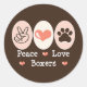 Montrez votre amour pour votre race préférée de chien avec notre joli symbole de paix rose et brun foncé, le design de coeur et empreinte de patte avec les mots Peace Love Boxers sur t-shirts, tee - shirts, vêtements et plus de boxer amoureux cadeaux pour toute la famille. Cliquez ici pour voir toutes nos chatoyantes et originales Chrissy H.