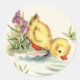 Comme c'est adorable ! Illustration vintage d'un canard au bord de l'eau avec quelques fleurs dans l'arrière - plan. Cela fait un autocollant très mignon ou sceau d'enveloppe.