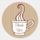 Une tasse de café vapeur orne ces autocollants. Utilisez ces stickers de tasse de café merci pour une entreprise, boulangerie, café, sacs cadeaux, comme scellés d'enveloppe, etc....Le design est pour l'art original.
