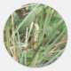 Cette belle feuille d'autocollants ronds présente une photo détaillée d'une sauterelle verte magnifiquement camouflée contre la lame d'herbe sur laquelle elle est assise. La photo a été prise en utilisant la macro photographie pour un résultat étonnamment détaillé.