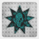 Stickers crâne punk cool et pointu avec un crâne foncé en turquoise et un arrière - plan étoilé imitant texturé en gris clair. Ces autocollants crâniens uniques ajouteraient un cool funky à toute surface que vous colleriez. Facile à customiser, le texte peut être ajouté à cette conception en cliquant sur le bouton "Customiser".