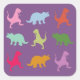 Des silhouettes colorées de dinosaures sur un autocollant.Customisez votre couleur arrière - plan.