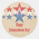 Stickers Fun et élégant Red, White and Blue Star Cascade Independence Day avec un arrière - plan en papier imitation texturé et des rangées descendantes d'étoiles rouges, blanches et bleues. Ces autocollants uniques sont une façon parfaite de montrer votre fierté américaine ce 4 juillet et feront de merveilleux faveurs de fête pour n'importe quel événement! Facile à customiser, ajoutez simplement votre propre texte dans l'espace prévu. Ce design est également idéal pour le Memorial Day !