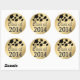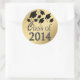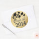 Voici quelques stickers de graduation ronds amusants et uniques populaires et enveloppes scellées avec un cool "Class Of 2014" design graphique en argent sur un arrière - plan d'or et beaucoup de casquettes de graduation en noir avec des tasselles en or volant joyeusement au-dessus pour célébrer le grand jour! Des autocollants parfaits pour toute la classe !