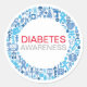 Appuyer la sensibilisation au diabète avec cet autocollant accrocheur. Beau regard avec cercle bleu Diabète fait de Symboles liés au traitement du diabète.