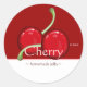 Utilisez ce charmant autocollant de cerise rouge dessiné par vecteur pour les gâteaux étiquettes, les biscuits, les bougies parfumées, les lotions, les savons ou tout autre chose qui est parfumé ou parfumé à la cerise ! Idéal pour la vente de gâteaux, les marchés des fermiers, pour l'étiquetage de vos confitures, gelées et confitures pour un usage personnel.