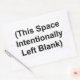 Une feuille de quatre autocollants de 4,5 pouces de large x 2,7 pouces de haut avec les mots "This Space intentionnellement Left Blank" entre parenthèses sur chaque.