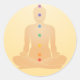 Illustration originale montrant une personne androgyne avec des chakras arc-en-ciel dans la méditation pose Lotus. La personne est illustrée de palmiers de ses mains dans la mudra réceptive. Les chakras sont montrés : Anahata, Muladhara, Swadhisthana, Manipura, Vishuddha, Ajna, Sahasrara.