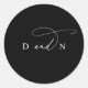Ces autocollants de charme élégant et de mariage noir sont parfaits pour un mariage simple. Le design minimaliste moderne présente une calligraphie romantique intemporelle sur un arrière - plan noir foncé sophistiqué au style conte de fées bohème. Personnalisez vos étiquettes de mariage monogrammées avec les initiales du couple.