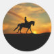 Vous pouvez aussi customiser ces autocollants ! Un beau lever de soleil et un dressage cavalier et cheval sont silhouettés à la lumière.