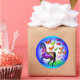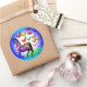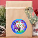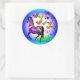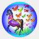 Cheval carrousel avec un troupeau de perroquets tout en couleurs très vives sur cet autocollant, idéal pour les enveloppes, la collecte et le trading.