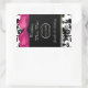 Une jolie bouteille de vin mariage favorise les autocollants faits dans un motif damassé noir et blanc, sur le dessus et le bas, et un noir solide, au milieu. Un arc en satin rose chic accentue le dessus de l'autocollant. Personnalisez le texte blanc pour votre réception de mariage.