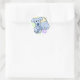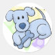 Adorable kawaii autocollants pour chien! Un chiot de bande dessinée bleue mâche joyeusement un os et remue la queue. Le dessin mignon amoureux des animaux de compagnie a un pois arrière - plan avec un arc-en-ciel de couleurs. Des produits colorés sont parfaits pour les adultes ou les enfants !