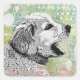 Joli chiot Golden Retriever noir et blanc sur un arrière - plan festif à motifs amusants.