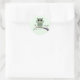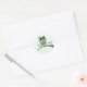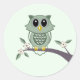 L'autocollant rond personnalisé a une chouette vectorielle verte mignonne sur une branche avec des feuilles et des fleurs et un arrière - plan vert clair personnalisable.