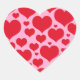 Les autocollants de coeur sont affichés dans un imprimé de coeur rose et rouge. Customisez cet objet ou achetez tel quel.