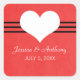 Charmant et doux Stickers de Mariage de Coeur Moderne avec un arrière - plan rouge et un coeur mignon et bordure rayée. Ces autocollants simples mais audacieux sont parfaits pour un mariage très moderne et contemporain. Facile à customiser, ajoutez simplement vos détails mariages pour faire de ce design votre propre ! Cliquez sur "Personnaliser" pour trouver d'autres options de personnalisation.