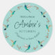 Ce joli autocollant personnalisable présente une couronne d'aquarelle de colibris et de branches botaniques sur un arrière - plan bleu aqua. Vous pouvez modifier la taille et le style de police en cliquant sur "Modifier à l'aide de l'outil de conception". Toutes les images de colibris sont tirées des aquarelles originales de C. Dobbins.
