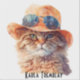 Stickers contours vinyle chat roux avec chapeau et lunette.