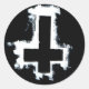 Une feuille de six gros autocollants avec le logo du Collectif Occulte, la croix inversée.