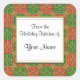 Un autocollant de cuisson ou de conserve sur mesure avec des lettres manuscrites et des objets d'art de vacances rouges et vertes avec une élégante fleur de lis vintage restaurée à partir de carreaux anciens.