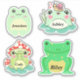 Mignons autocollants de grenouille de dessin animé. Chaque image s'éloigne séparément. Parfait pour identifier les biens dans la classe de l'école. Il est facile de modifier les noms personnels ou de les supprimer.
