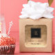 Monogramme d'or dans le carré noir sur arrière - plan texturé or. Customisez et ajoutez votre propre logo, et retirez le carré et le monogramme au besoin.