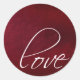 Design tourbillon rouge foncé avec amour dans la police de script. De grands autocollants pour enveloppes, sacs cadeaux et autres décorations mariages.