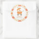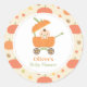 Des autocollants décoratifs pour ces faveurs et cadeaux de baby shower. Le design est offert avec un petit bébé mignon qui sort d'une poussette orange qui ressemble à un citrouille géant. Dans l'arrière - plan est un motif fait en utilisant le citrouille et le feuille. Idéal pour les baby showers en automne ! Personnalisez avec votre message personnel.