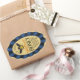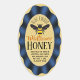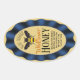 Bordure de ruban bleu moderne au-dessus d'un arrière - plan d'or avec un graphique de bourdon au centre pour créer vos propres stickers de pot de miel élégant. Customisez le texte avec le nom de marque de votre entreprise apicole, les coordonnées, le type de miel, le poids et la date, Conçu pour les contenants ovales et queenline de miel, les bouteilles à l'envers et les pots de mason quart.