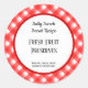 Restaurant rétro rouge et blanc plaid motif de chèques et rayures sur des autocollants de conserverie personnalisés avec des lettres de script et de bloc pour votre nom ou petite entreprise, titre de la recette et la place pour les ingrédients, le poids, l'adresse, ou plus d'informations.