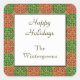 Un élégant autocollant de Noël ou de fête ou de pâtisserie avec des lettres manuscrites et des carrés rouges et verts avec une élégante fleur de lis vintage motif en or, restaurée à partir de carreaux anciens.