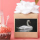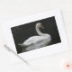 Cette feuille d'autocollants ronds présente une photo d'un beau cygne blanc. Le cygne est un cygne muet. Il a l'air très beau car il nage gracieusement le long d'une rivière calme.