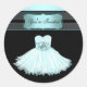 Jolie turquoise robe de fête bleue autocollants de fête d'anniversaire. Vous pouvez ajouter le texte de votre choix en cliquant simplement sur le bouton "Customiser !".