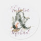 Aquarelle Stickers de mariage de forêt boisée avec renard décoratif dans l'esperluette de forêt brumeuse et prénoms.