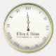 Décor parfait pour les wedding showers du réveillon du Nouvel An et cadeaux. Face d'horloge numérique romaine avec les mains du coeur d'amour et accent de jante or. Modifiez facilement les noms et la date de cette conception. Vous pouvez également changer de police pour un look plus élégant si vous le souhaitez.