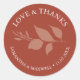 Ces autocollants de mariage modernes présentent un design botanique simple mais élégant dans une orange d'automne chaude. Conçu comme un modèle facile à utiliser, vous pouvez customiser les noms et la date de la mariée et du marié en blanc immaculé. Parfaits pour un mariage minimaliste et contemporain, ces autocollants rendent élégant remerciement ou enveloppes sceaux. Achetez des designs plus minimalistes à l'adresse www.zazzle.com/dotellabelle.