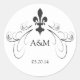 Personnalisez votre correspondance mariage avec ces Stickers de Mariage Fleur de Lis. Les autocollants comportent un parchemin avec un symbole décoratif de la fleur de Lis. Ajoutez vos initiales et votre date de mariage en remplissant le modèle, ou cliquez sur le bouton personnaliser pour apporter d'autres modifications à la police et au placement du texte.