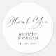 Express gratitude dans un style intemporel avec ces élégants autocollants de mariage "Merci". Dotés de calligraphie noire classique, de noms de couple personnalisables et de date mariage, ces étiquettes ronds sont parfaits pour sceller des enveloppes, décorer des sacs de faveur ou ajouter une touche personnalisée aux cadeaux. Un design chic et polyvalent pour les mariages modernes, les réceptions et les célébrations.