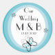 Papillon et fleurs avec une bordure couleur ombragée rend votre autocollant monogramme mariage unique et attrayant et vous aide à ajouter une touche personnelle à vos invitations, faveurs de fête, etc. Cliquez sur le bouton customiser pour modifier la taille et la police de votre monogramme.