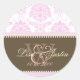 stickers de mariage rose Damask Monogram (enveloppes de scellage), nuances d'accent chocolat. Idéal pour un usage quotidien. Entièrement personnalisable. Les polices et les couleurs arrière-plan peuvent être facilement changées. Copyright © 2009 PixDezines.com et PixDezines sur zazzle.com