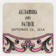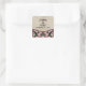 Stickers de mariage gothique élégant et chic avec un vintage arrière - plan beige imitant texturé et bordures fleuries tourbillonnantes en magenta. Ce design ancien est parfait pour un mariage gothique ou vintage. Facile à customiser, il suffit d'ajouter les détails de votre mariage dans les champs de texte fournis. Cliquez sur "Customiser" pour trouver d'autres options de personnalisation.