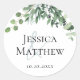 Customisez vos propres autocollants de mariage rustique avec les noms de la mariée et du marié ainsi que leur date de mariage. Beau feuilles d'eucalyptus peints à la main et feuillage botanique dans les tons sauge, vert et bleu poussiéreux. Voir notre collection pour plus de belles créations dans ce thème mariage. Stickers De Mariage Rustique Eucalyptus.